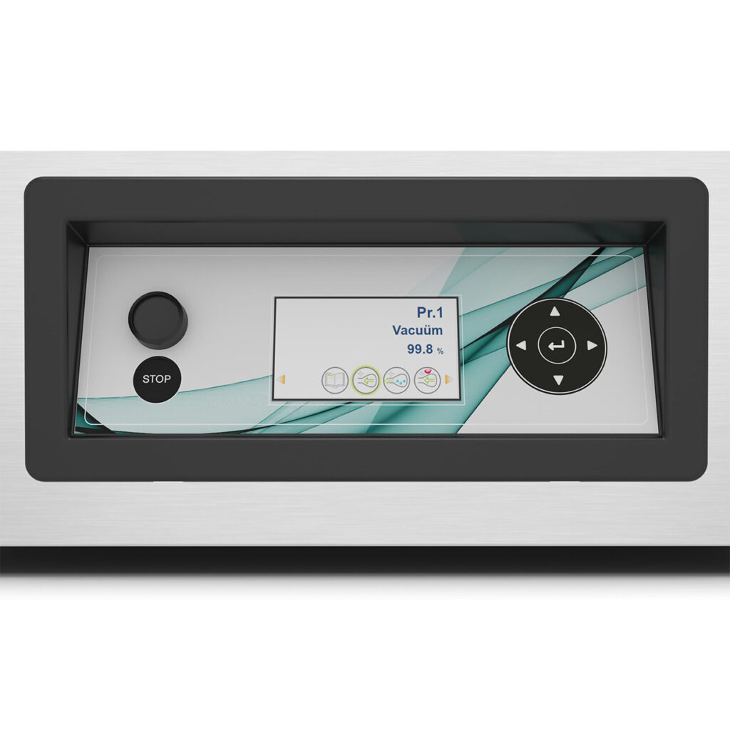Zaawansowany system kontroli, który gwarantuje powtarzalny i precyzyjny efekt pakowania próżniowego, niezależnie od rodzaju produktu czy wielkości partii.