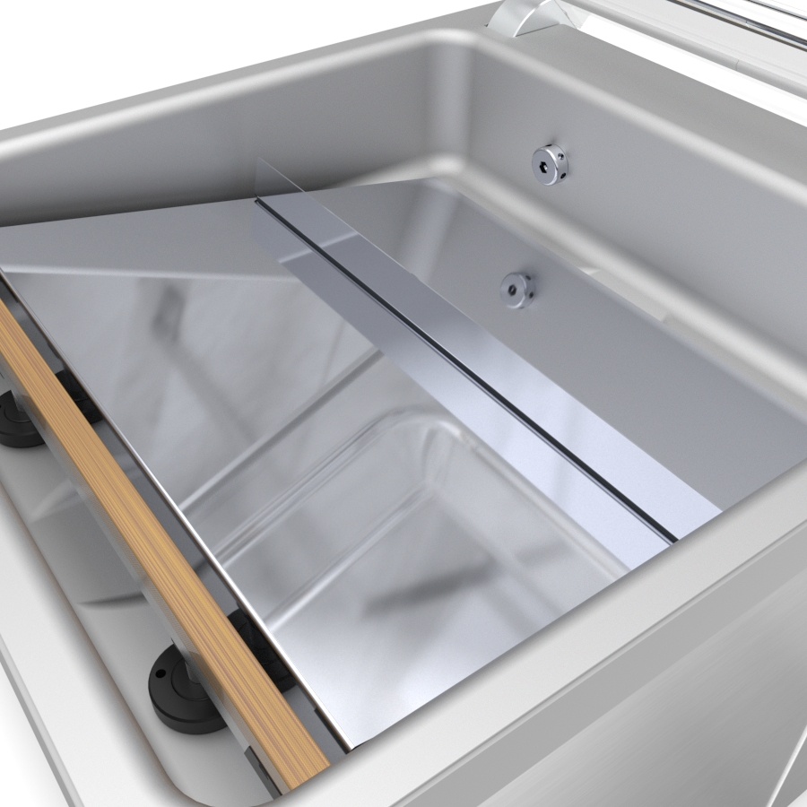 Ustawia worek próżniowy pod kątem, co ułatwia i usprawnia pakowanie próżniowe płynów oraz produktów sypkich.
