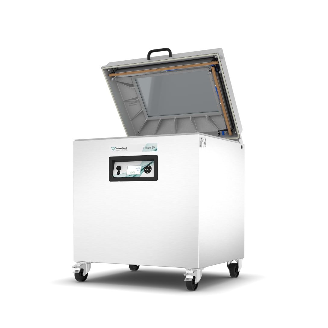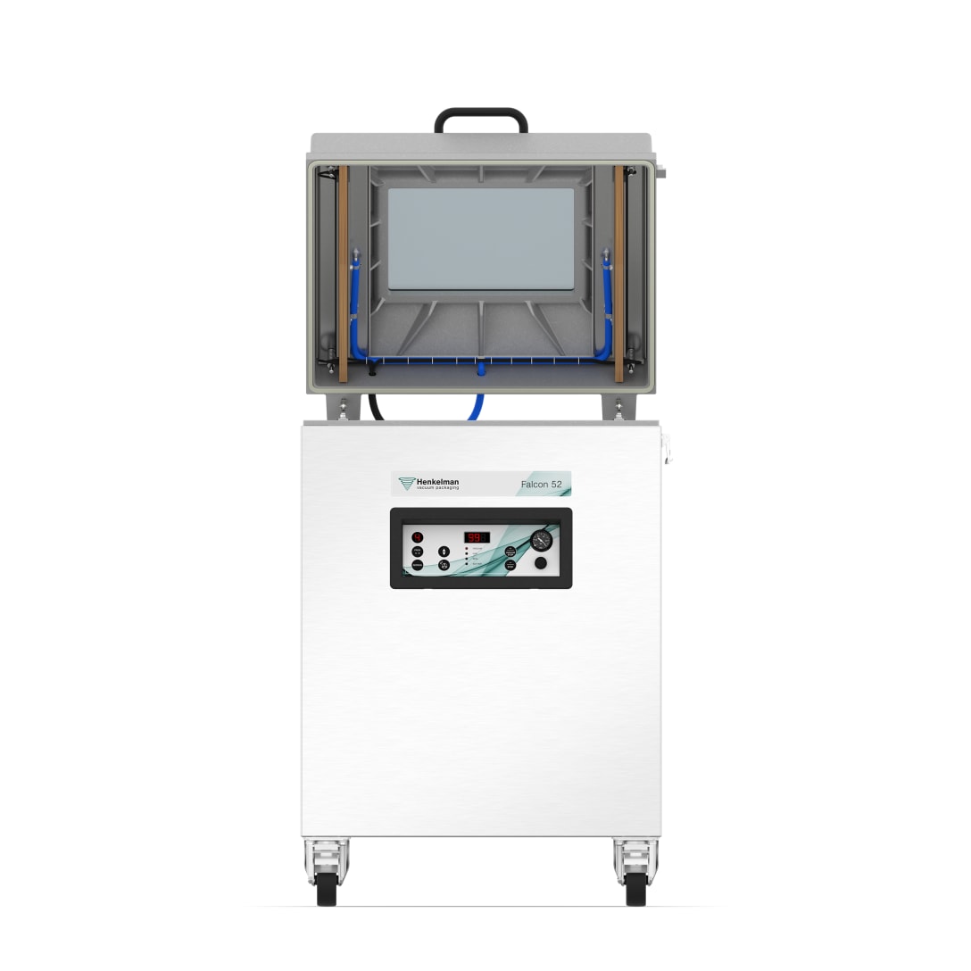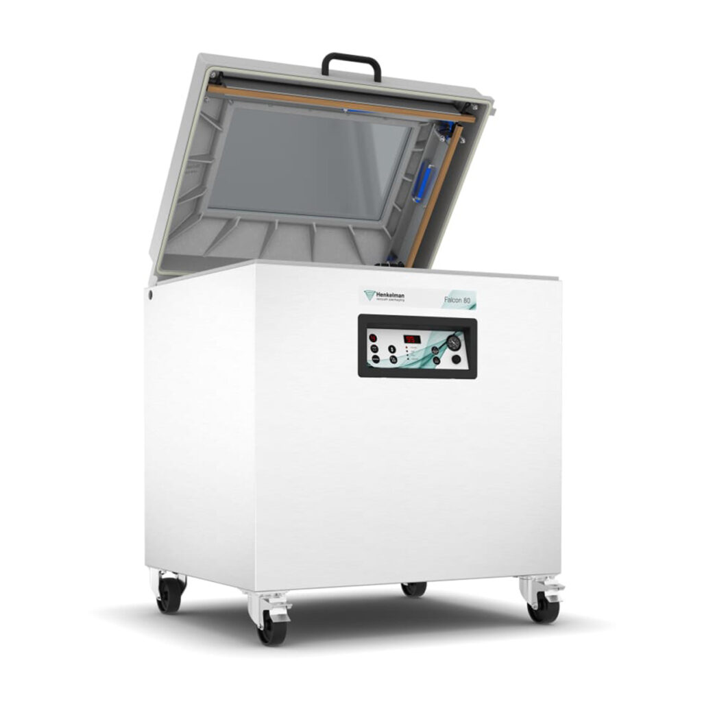 Henkelman Falcon Double Chamber (DC) to przemysłowa, wolnostojąca pakowarka próżniowa dwukomorowa, zaprojektowana do intensywnej pracy w zakładach przetwórczych i dużych kuchniach produkcyjnych. Aluminiowa konstrukcja łączy niską wagę z wysoką trwałością, a dwie głębokie komory umożliwiają pakowanie produktów o dużych gabarytach lub wielu mniejszych opakowań jednocześnie. To rozwiązanie dedykowane firmom pracującym na dużych wolumenach – w branży mięsnej, rybnej, warzywnej czy w produkcji żywności mrożonej.