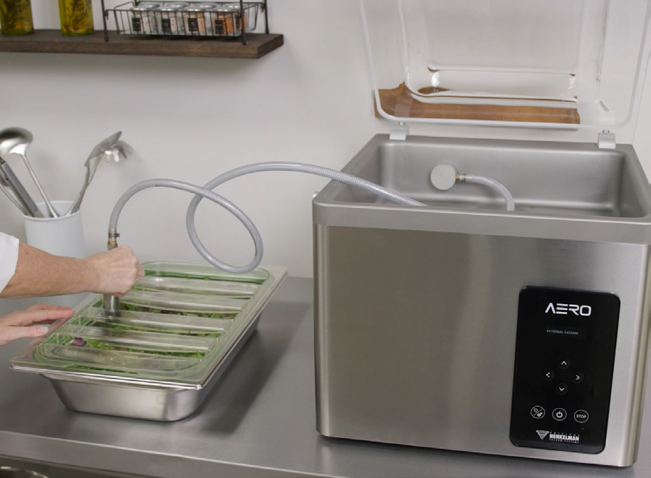 GreenVAC to przyjazny dla środowiska system pakowania próżniowego wielokrotnego użytku. Gwarantuje maksymalną próżnię bezpośrednio w pojemnikach gastronomicznych wyprodukowanych specjalnie do tego celu.